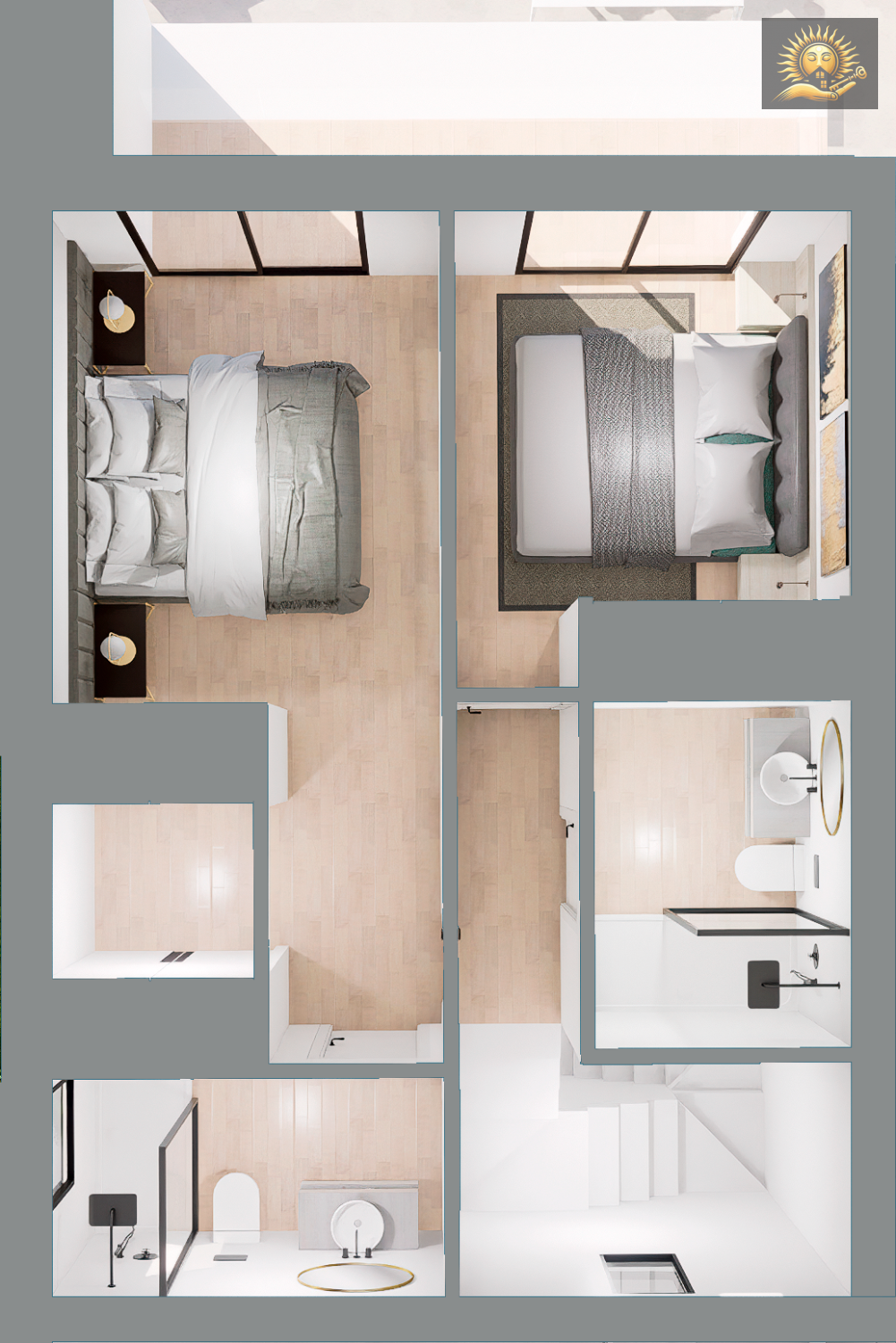 El interior ofrece una planta abierta que integra salón, comedor y cocina, con grandes ventanales que aportan abundante luz natural y conexión directa con el exterior. Los dormitorios son amplios, luminosos y bien distribuidos, y el principal cuenta con acceso a un balcón privado.Los baños destacan por su diseño elegante y funcional, con acabados tipo hotel: ducha, lavabo, mobiliario y mamparas incluidos.
