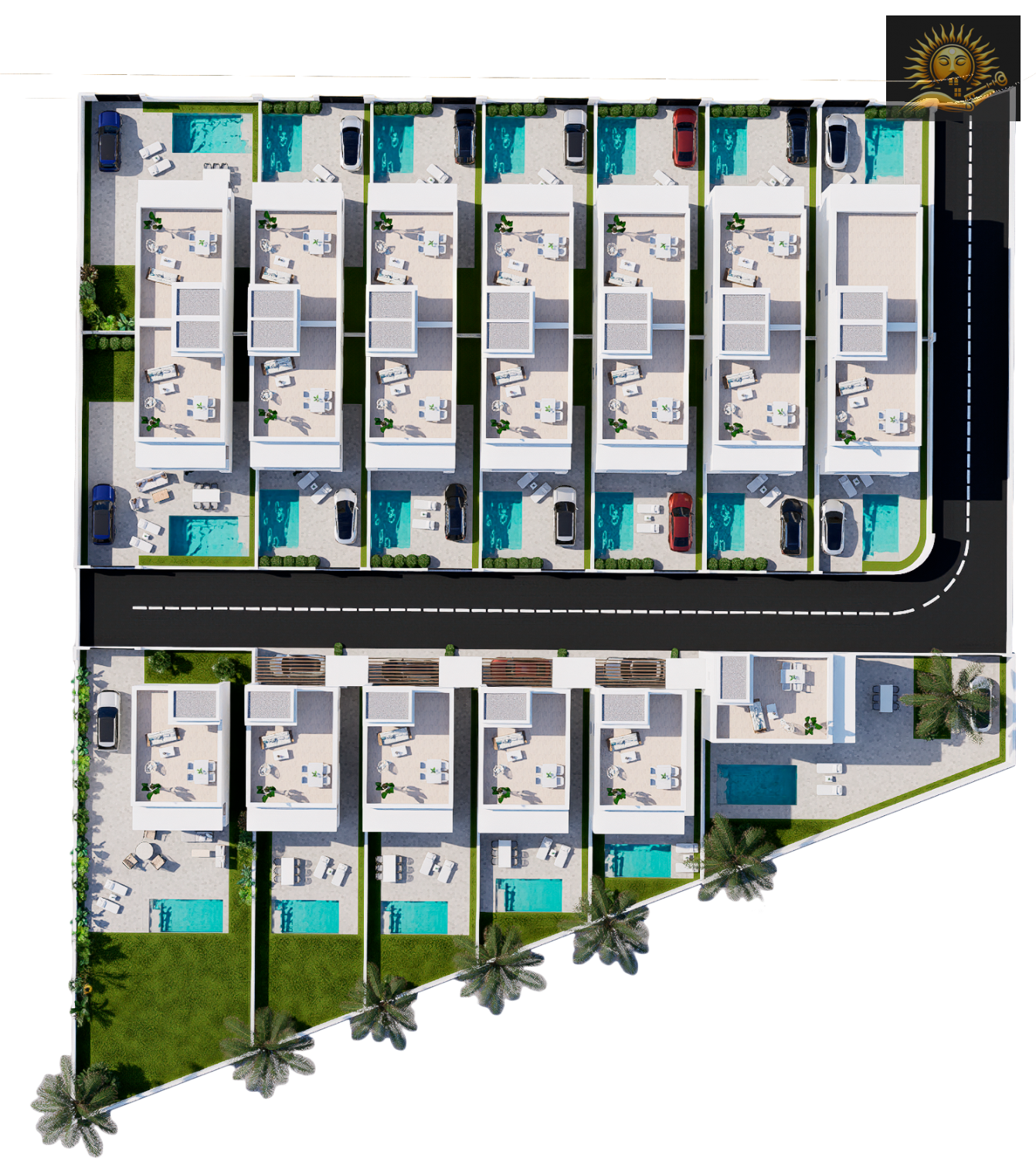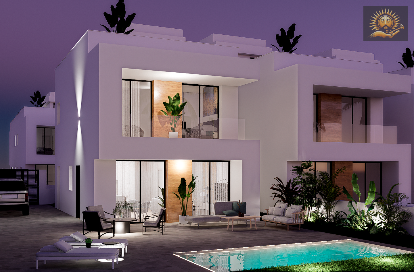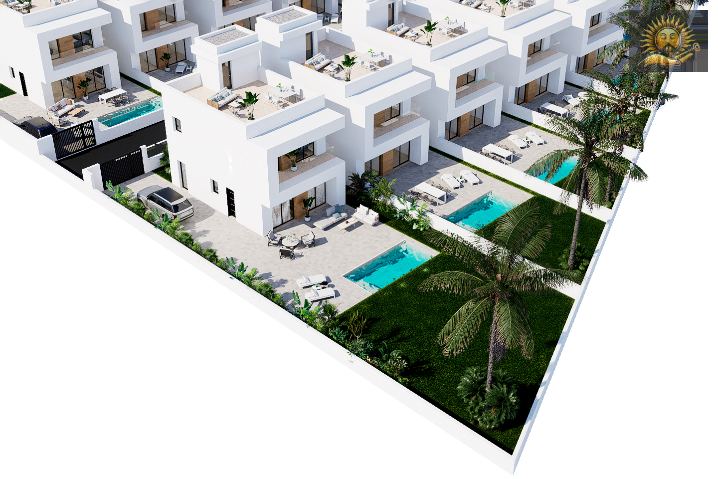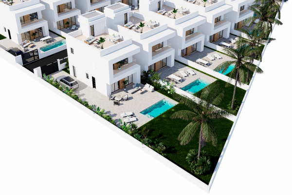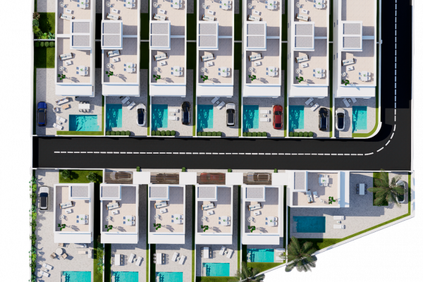 Se trata de 20 viviendas unifamiliares con líneas arquitectónicas contemporáneas, materiales de alta gama y distribuciones pensadas para aprovechar al máximo cada espacio. Cada villa se ubica sobre una parcela privada que incluye piscina, zonas ajardinadas, aparcamiento y una espectacular terraza en la azotea ideal para disfrutar del sol mediterráneo.