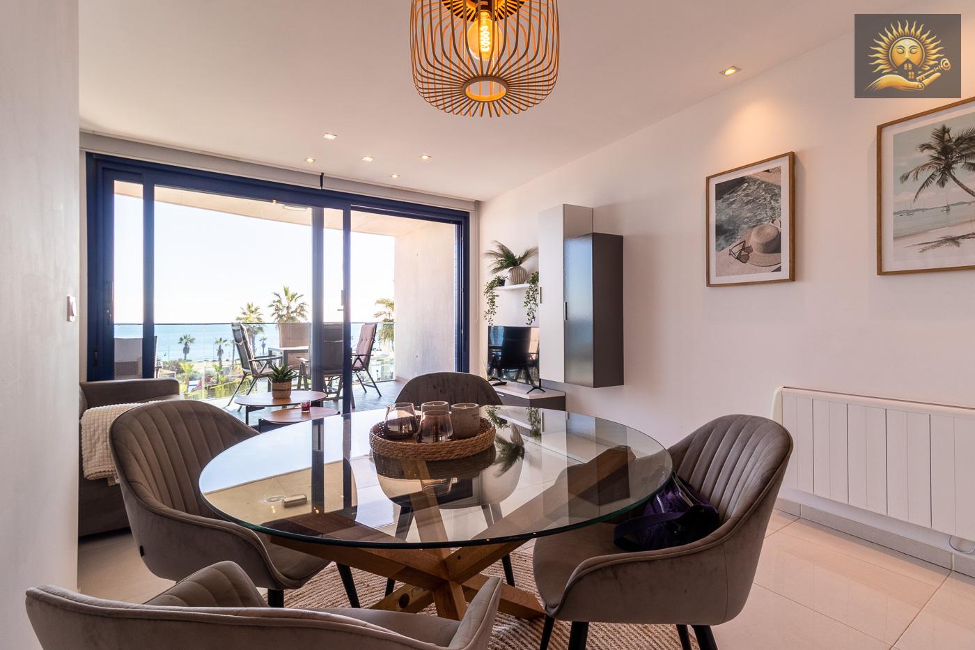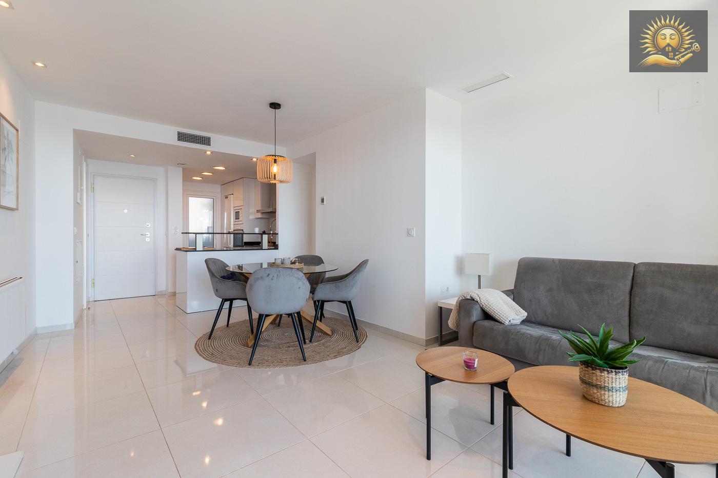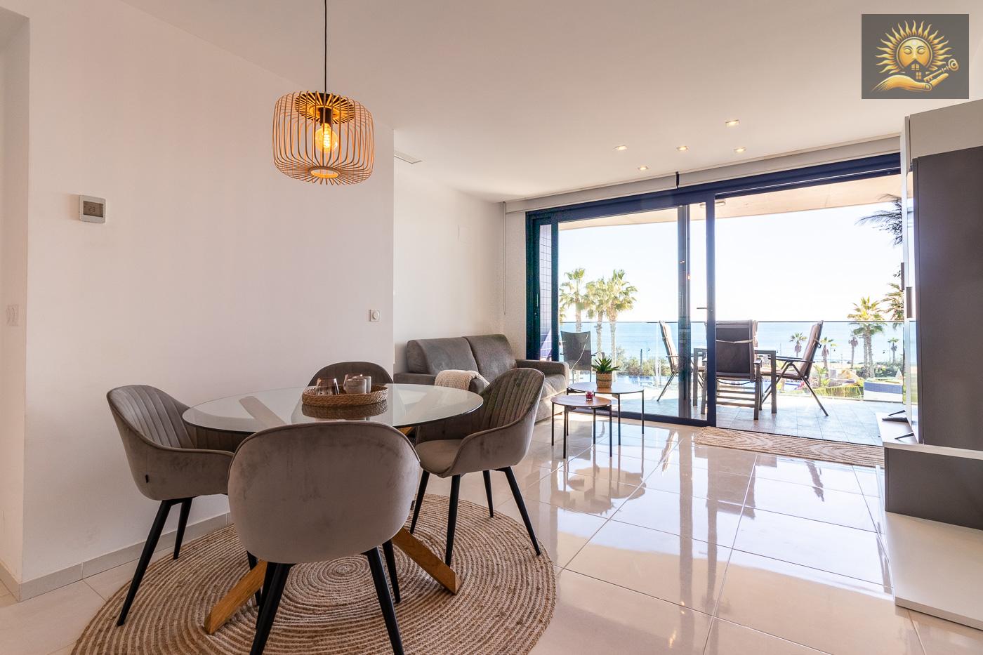 Moderne og lys leilighet i Punta Prima, et av de mest eksklusive boligområdene i Torrevieja. Denne boligen ligger bare noen skritt fra sjøen, og tilbyr førsteklasses beliggenhet i et privat kompleks med førsteklasses fasiliteter.